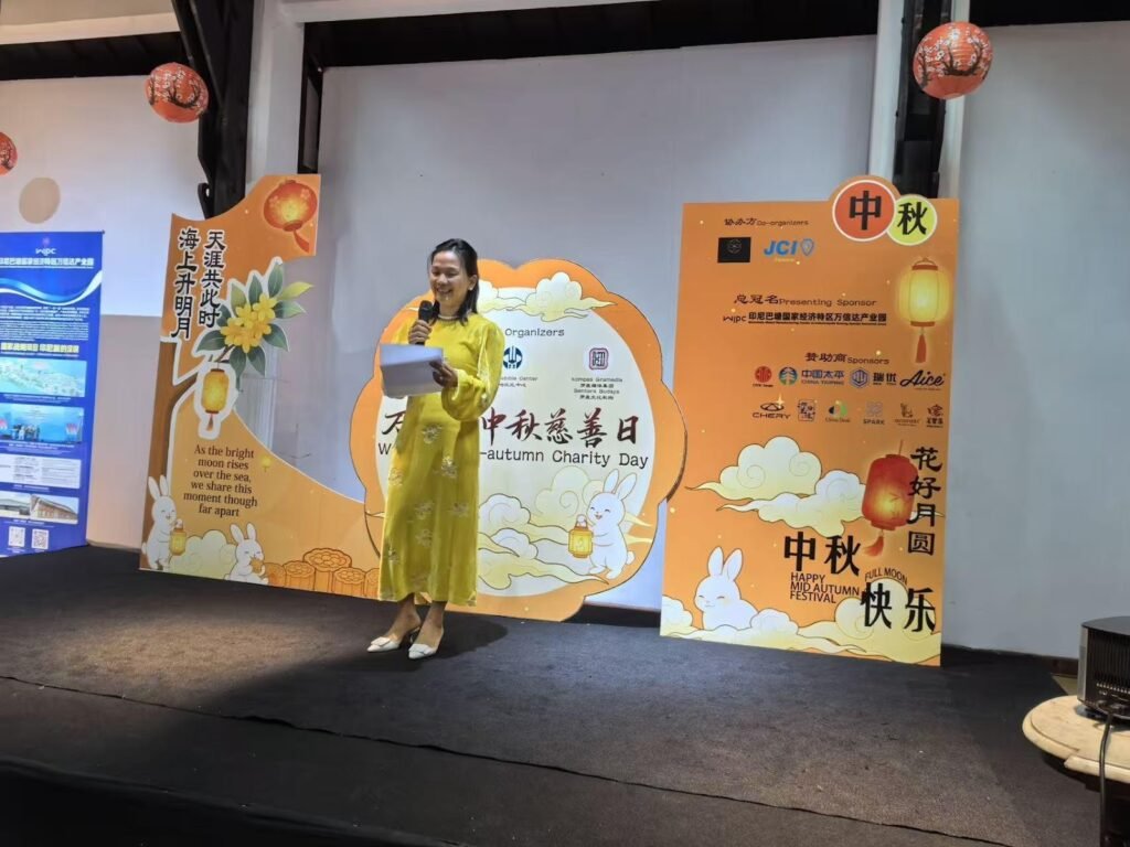 作为本次慈善活动的主要赞助商,印尼巴塘国家经济特区万信达产业园创始人陈日铃的夫人金菊萍女士应邀上台致辞。她以真挚且富有感染力的语言,阐述了慈善的深刻意义:“慈善,是人类情感中最质朴、也最崇高的表达;它超越国界,连接心灵,是我们共同的精神纽带。今天,我们因爱相聚,为善同行。”