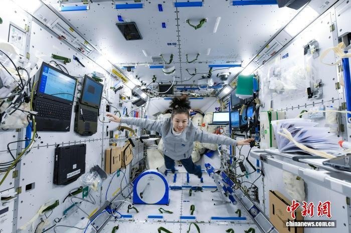 2021年10月16日,神舟十三号载人飞船成功发射。图为航天员王亚平在轨照片。