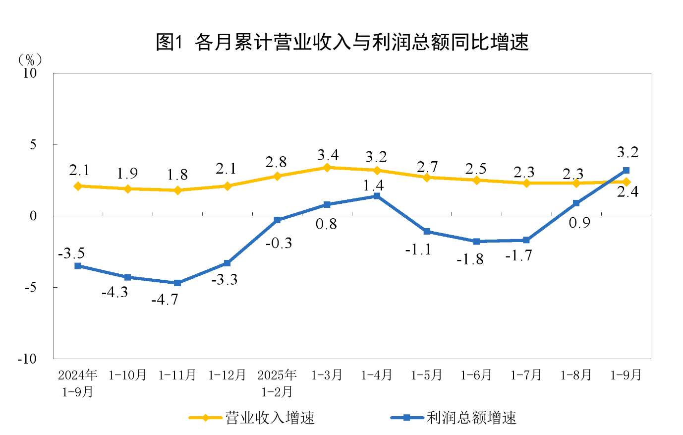 Beranda中国新闻中国国家统计局:1-9月份全国规模以上工业企业利润增长3.2%