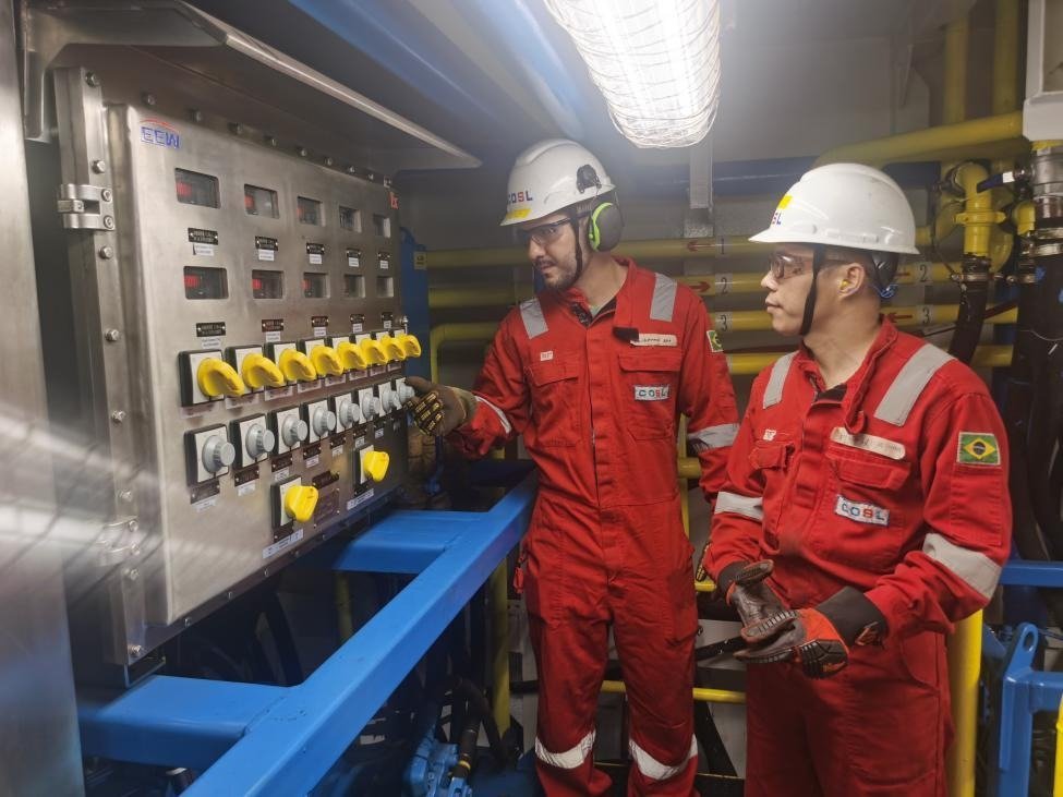 “海恒”作业团队正在进巡检井筒工作液控制系统
