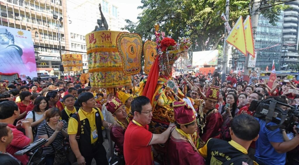2017年起,妈祖开始了一场场令人瞩目的“跨国巡安”。妈祖“拿着”虚拟身份证,搭乘飞机、邮轮、动车,把平安吉祥送到马来西亚、新加坡、菲律宾、泰国等国家。所到之处,万人空巷,掀起“妈祖热”。