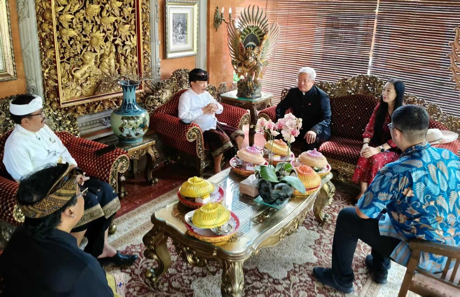 2026年1月11日,中国驻登巴萨总领事张志昇在印度尼西亚巴厘省乌布王宫会见原乌布王室代表佐普特拉及其胞弟巴厘前副省长、省酒店和餐饮协会主席佐阿杰。总领馆副总领事朱宇等参加。