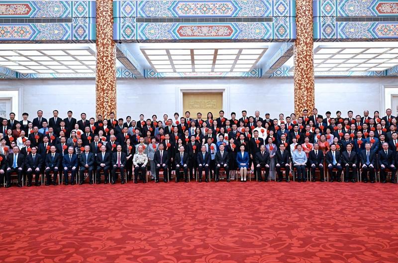 会前,中共中央政治局常委、国务院总理李强会见大会代表并同大家合影。
