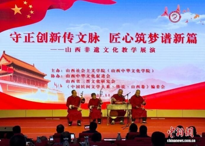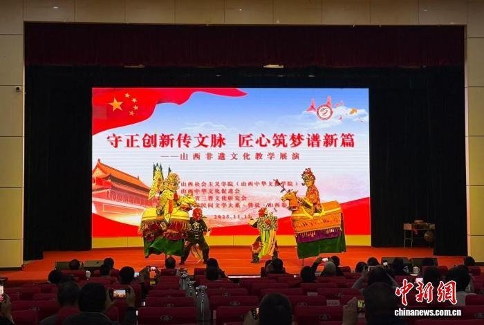 “守正创新传文脉 匠心筑梦谱新篇”山西非遗教学展演由山西社会主义学院(山西中华文化学院)主办,山西中华文化促进会、山西省三晋文化研究会、《中国民间文学大系·传说·山西卷》编委会协办。(中新网 杨杰英)