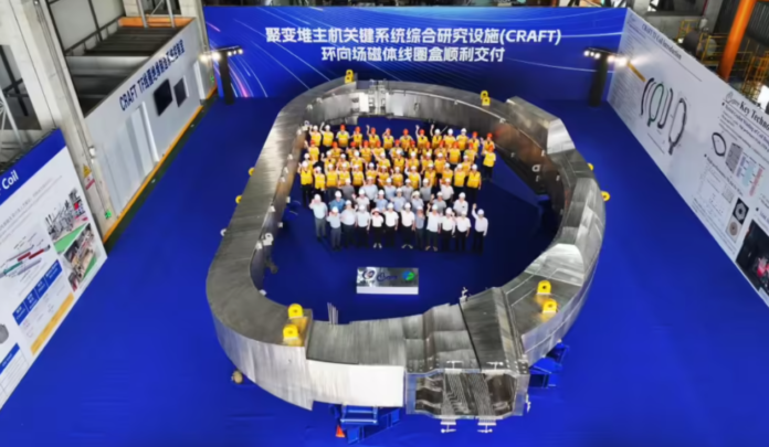 【环球网科技综合报道】10月11日消息,中国科学院合肥研究院等离子体物理研究所(以下简称“等离子体所”)近日宣布,聚变堆主机关键系统综合研究设施(CRAFT)项目迎来重大突破——重达400吨的世界最大环向场(TF)磁体线圈盒已顺利抵达合肥园区并完成交付,为中国聚变能源商业化进程奠定重要基础。