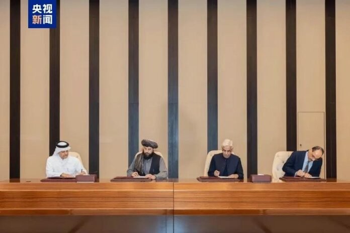 声明表示,在卡塔尔和土耳其的斡旋下,巴基斯坦和阿富汗在多哈举行了首轮会谈。双方在会谈中同意立即停火,并建立相应机制,以巩固两国的持久和平与稳定。双方还商定在未来几天内继续举行会谈,以确保实现停火的可持续性,并以可靠和可持续的方式核实停火的执行情况,以实现两国的安全与长期稳定。