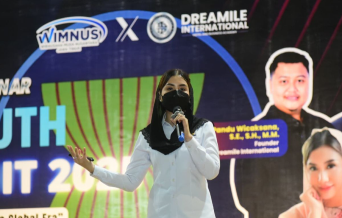 诺维塔在东爪哇省穆罕默迪亚大学展览中心举行的“2025年东盟青年未来峰会”国际研讨