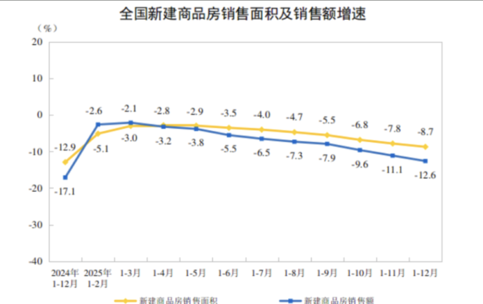 国家统计局数据显示,2025年,全国新建商品房销售面积88101万平方米,同比下降8.7%;其中住宅销售面积73299万平方米,同比下降9.2%。