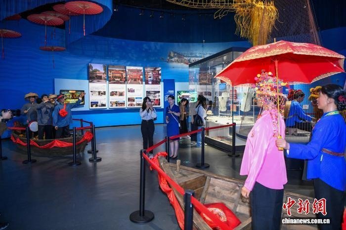 在海南疍家博物馆展出的疍家人举行水上婚礼的场景。