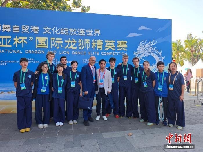 1月18日,海南三亚,意大利舞龙队参加2026“三亚杯”国际龙狮精英赛期间合影。