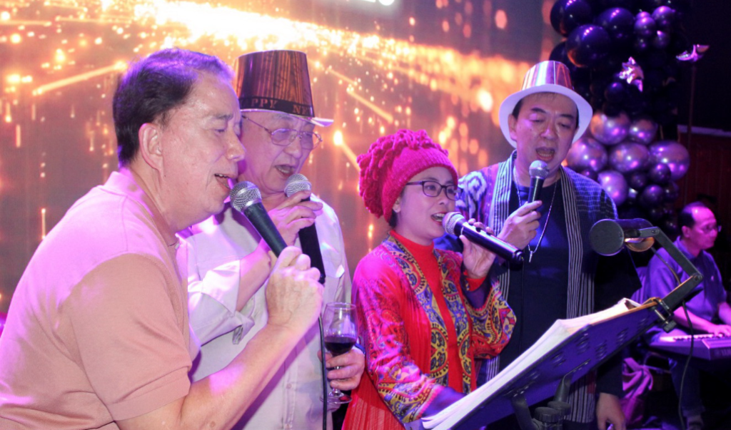 联欢会特邀阿东乐队现场助兴。悠扬乐声中,众多爱好歌唱的嘉宾纷纷登台一展歌喉,或深情或欢