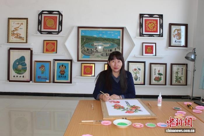 吴淑丽是“70后”,本职工作是一名中学美术教师,于1999年创办敖汉小米贴画工作室,如今她已是非物质文化遗产代表性项目敖汉小米贴画的旗级传承人。
