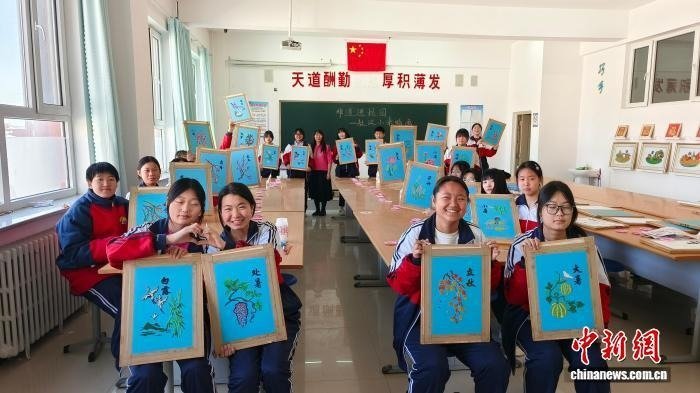 2016年以来,吴淑丽还把小米贴画艺术引入中小学的美育课堂。她不仅将工作室打造成农村中小学的实践教学基地,还常带着小米和工具走进校园,从敖汉小米的历史讲起,手把手教学生筛选、构图、粘贴。