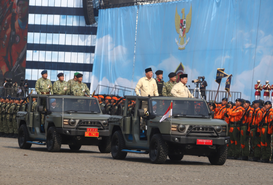 达中区国家纪念碑(Monas),以检阅官身份主持印尼国民军(TNI)成立80周年纪念庆典仪式