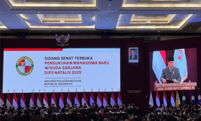 18日,普拉博沃出席在西爪哇万隆举行的印尼国立大学 毕业典礼并发表讲话说,我们要