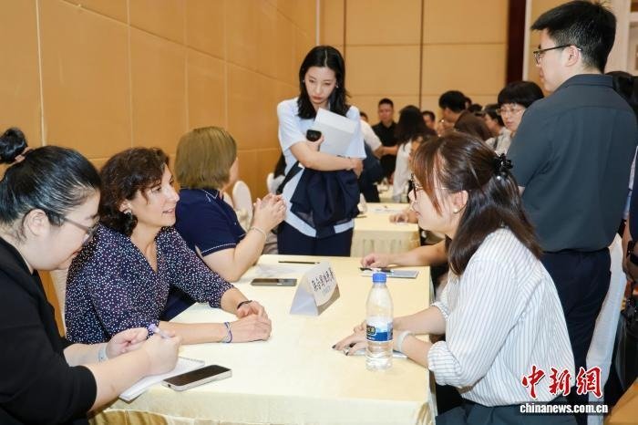 “面对面交流,让我们更有针对性地了解外商需求。”在嘉兴海宁的跨国采购对接会上,平湖市太士服饰的外贸经理一边填对接清单,一边回应中东采购商关于羽绒服面料材质与交货周期的询问。
