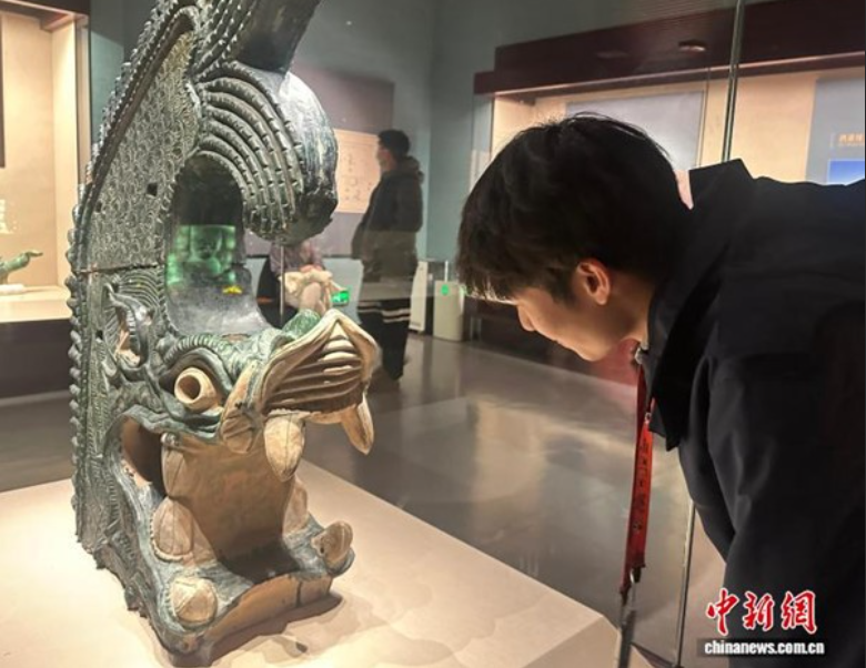 宁夏博物馆内,一件西夏陵出土的琉璃鸱吻吸引了李