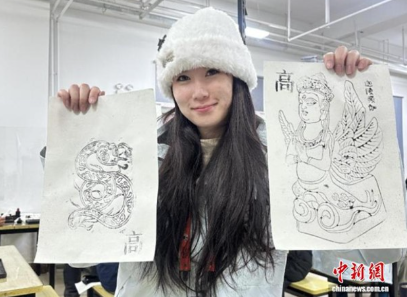案及专属的西夏文姓氏。来自台湾的高婷萱手持自己制作