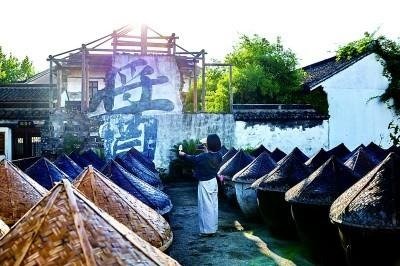 浙江嘉兴沈荡镇,中华老字号企业海盐沈荡酿造有限公司的传统晒场成热门打卡地。
