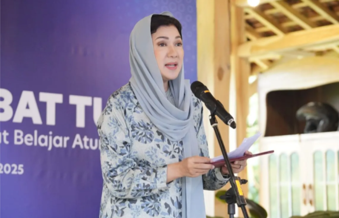 她是在西爪哇省苏加武眉(Sukabumi)举行的“Tunas朋友宣传论坛:优秀儿童学习《Tunas政府