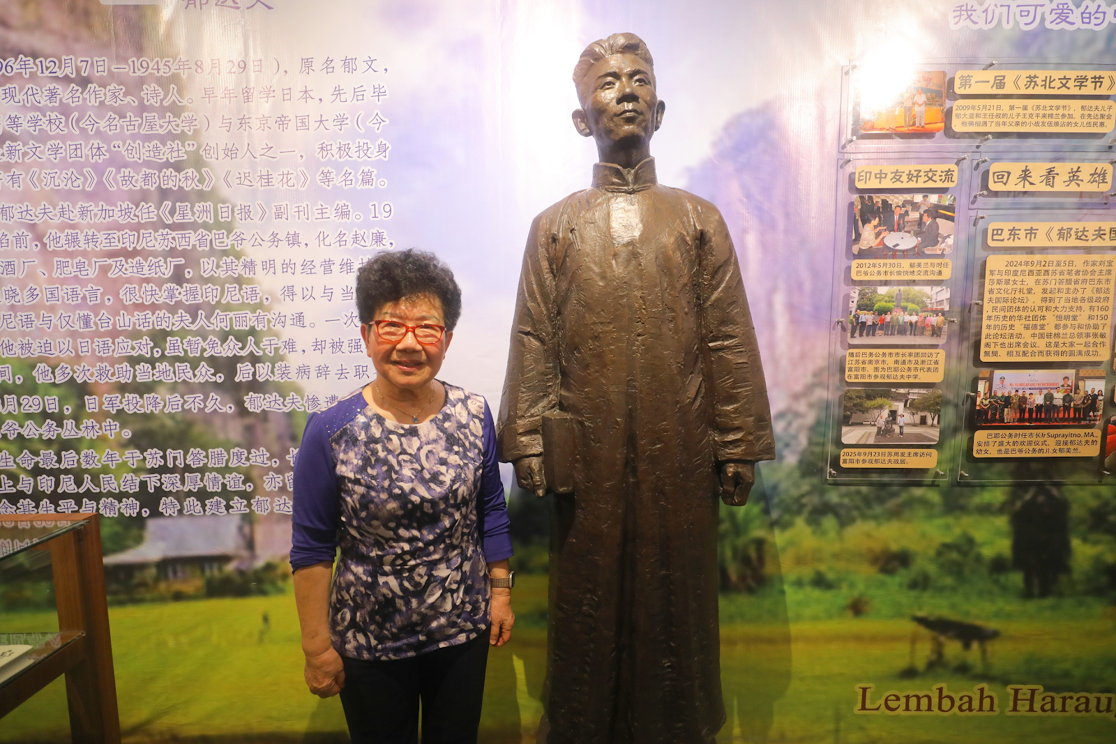 在纪念馆内凝望父亲的铜像,她说,自己仿佛又得到了片刻释怀——80年前,郁达夫在苏门答腊的密林中消失;80年后,他的文学与精神在这片土地上重新屹立。