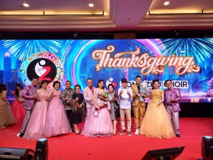 【本报讯】11月29日晚,雅加达Season City灯火辉煌、歌声悠扬,“2025感恩音乐会”在此盛大举行。近700名来宾齐聚一堂,共同沉浸在这场充满感恩与温情的音乐盛宴中,现场共70桌宴席座无虚席,气氛热烈非凡。