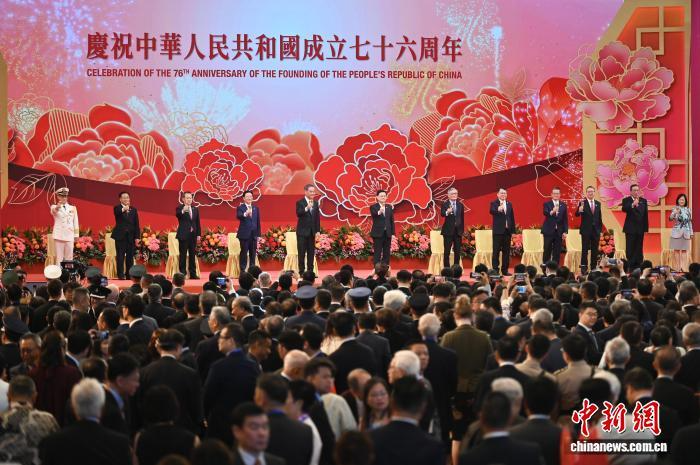 10月1日,香港特区政府在香港会议展览中心举办国庆酒会,庆祝中华人民共和国成立76周年。