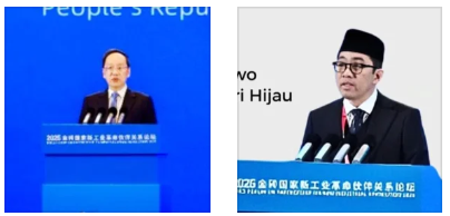 印尼副工业部长Faisol Riza在论坛上发言 / 中国工业和信息化部部长李乐成发言